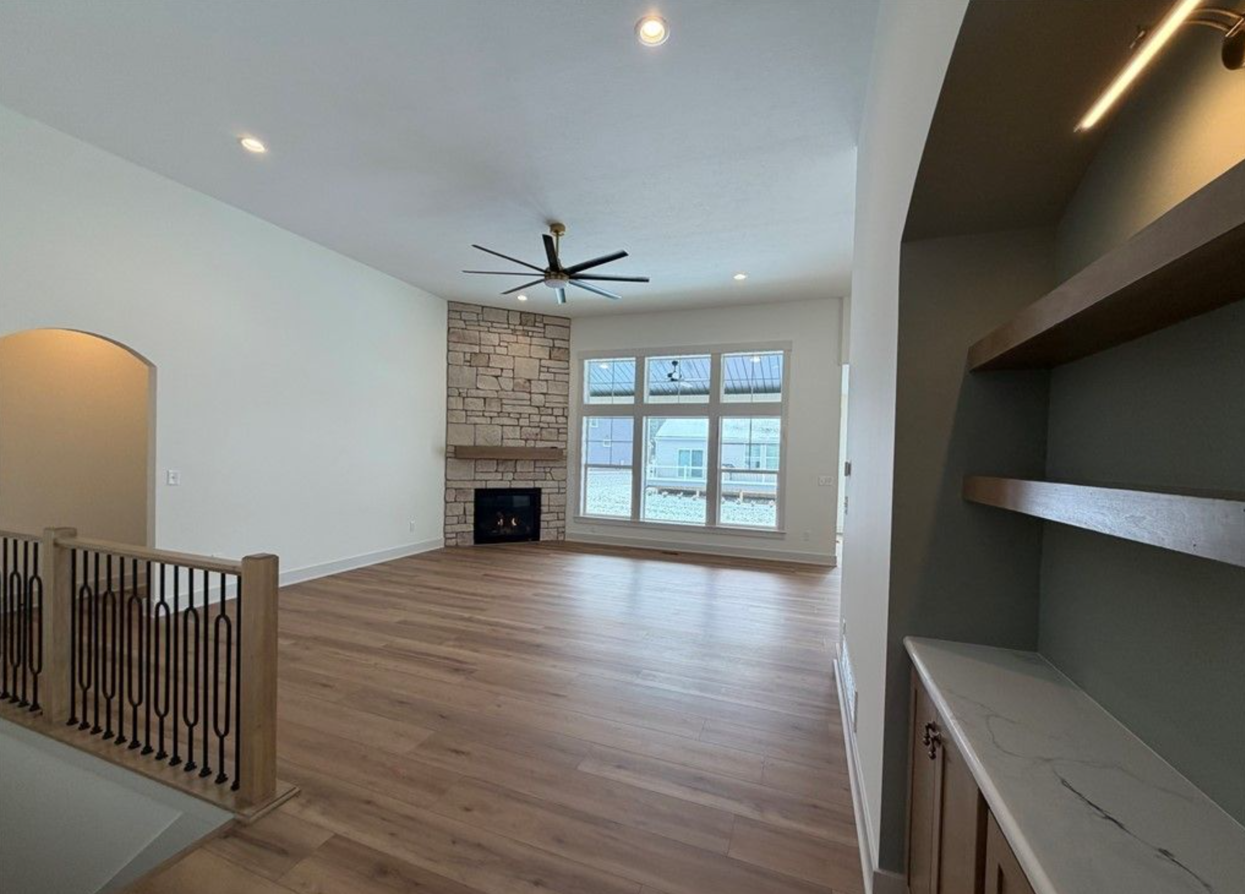 - Arched openings throughout the main living areas