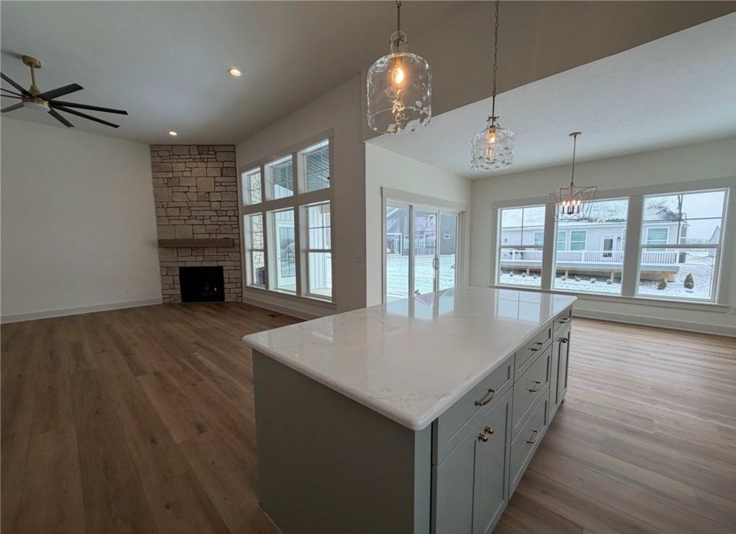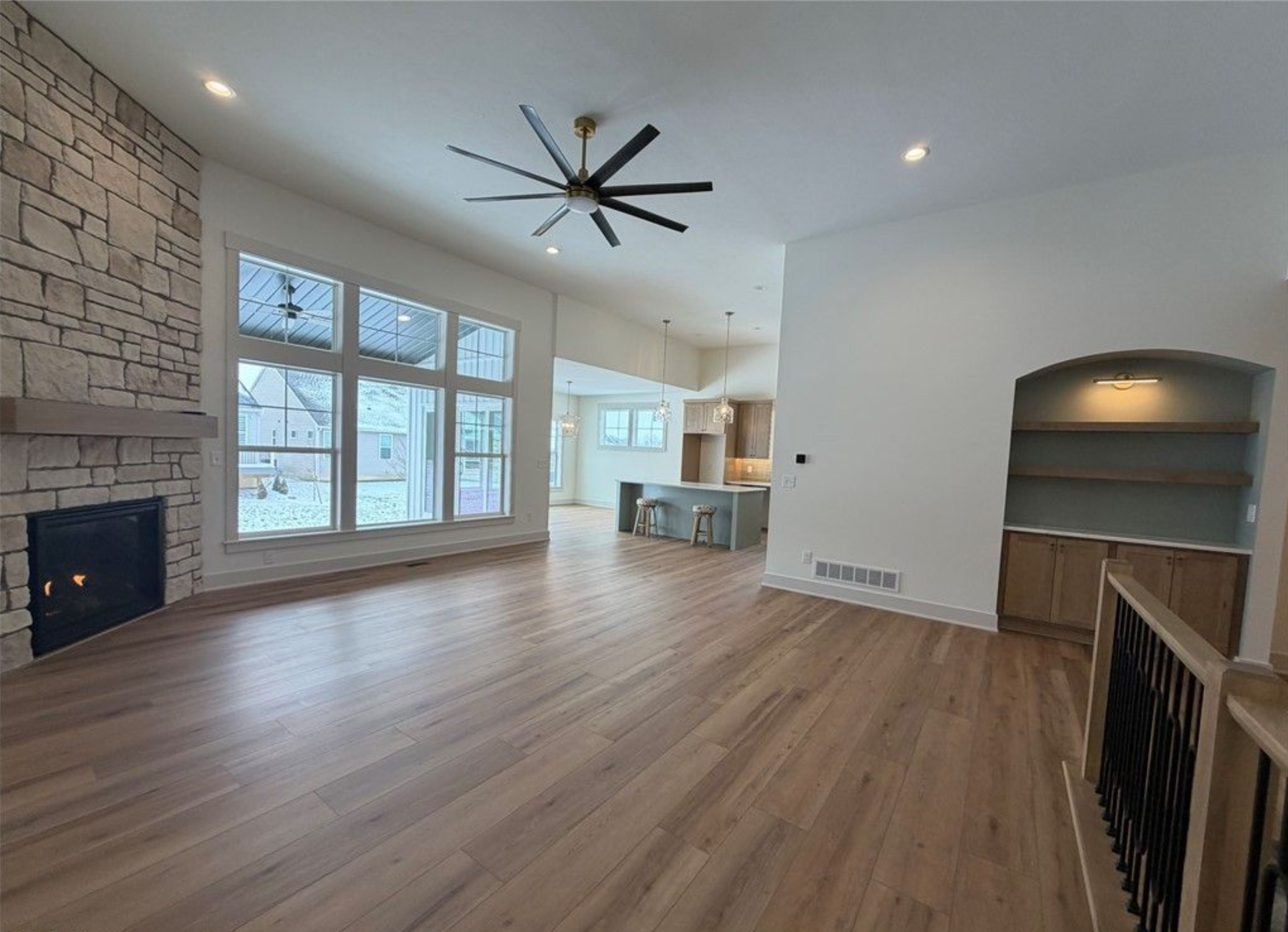 - Great room with 12′ ceiling